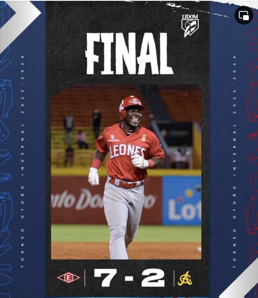 En un emocionante enfrentamiento en el Estadio Cibao de Santiago de los Caballeros, los Leones del Escogido rugieron con fuerza para vencer 7 carreras por 2 a las Águilas Cibaeñas. Framil Reyes la mole , quien es el líder en jonrones de la liga, lideró la ofensiva escarlata al conectar un impresionante cuadrangular por todo el jardín central. La victoria se vio empañada por un altercado protagonizado por el lanzador veterano Alfredo Simón Cabrera, quien se encimó al árbitro de home plate en un tenso momento producto de que el árbitro no le cantara un lanzamiento a su favor. A pesar de la discordia, los Leones brillaron en el diamante.